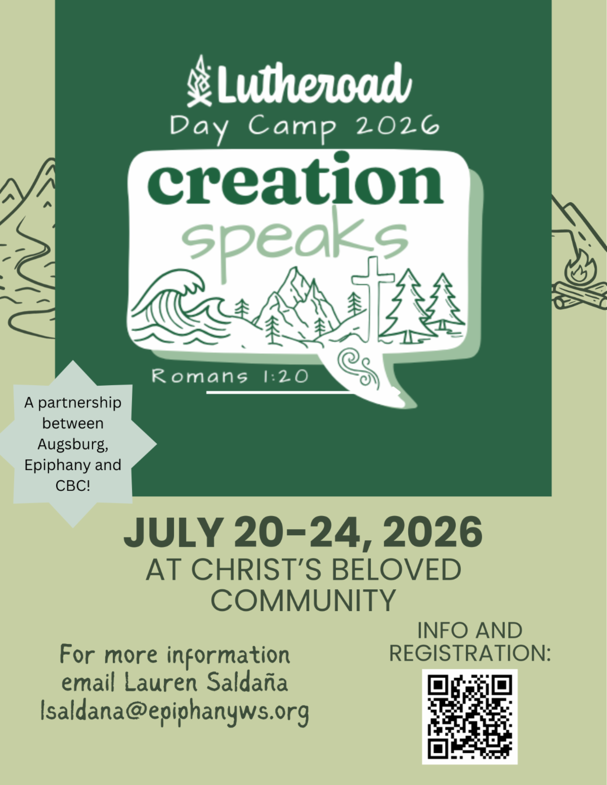 Augsburg is so excited to announce that this year, Lutheroad will take place at Christ's Beloved Community July 20-24! The children's ministry leadership from Augsburg Lutheran and Epiphany Lutheran have been working with the CBC youth director, Daijah Dixon, to make camp a reality for even more children in our community this year! As in years past, Lutheridge will be sending their awesome counselors for a week of silly skits, fun songs, arts and crafts, games, and learning more about God.
